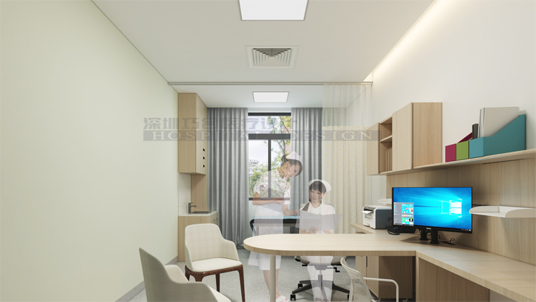 室內(nèi)采用較多原木色進(jìn)行裝飾設(shè)計(jì),區(qū)別于其他科室多了一絲柔和,溫馨度及整潔度較大提高。