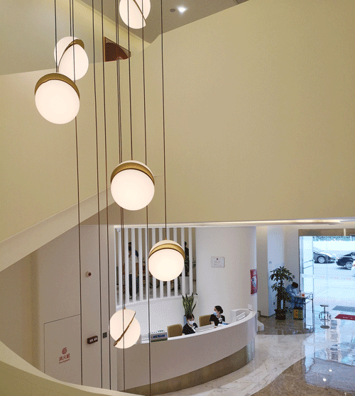 大廳中央的這一束燈,簡直大愛!溫柔的光傾瀉而下,令此處成為空間的視覺焦點(diǎn),也平添了幾分意境。