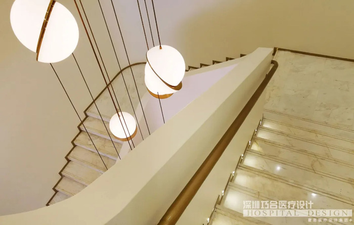 沿樓梯上行,二層是醫(yī)療美容單元。大廳采光極好,順勢將窗外的風(fēng)景也引了進(jìn)來。