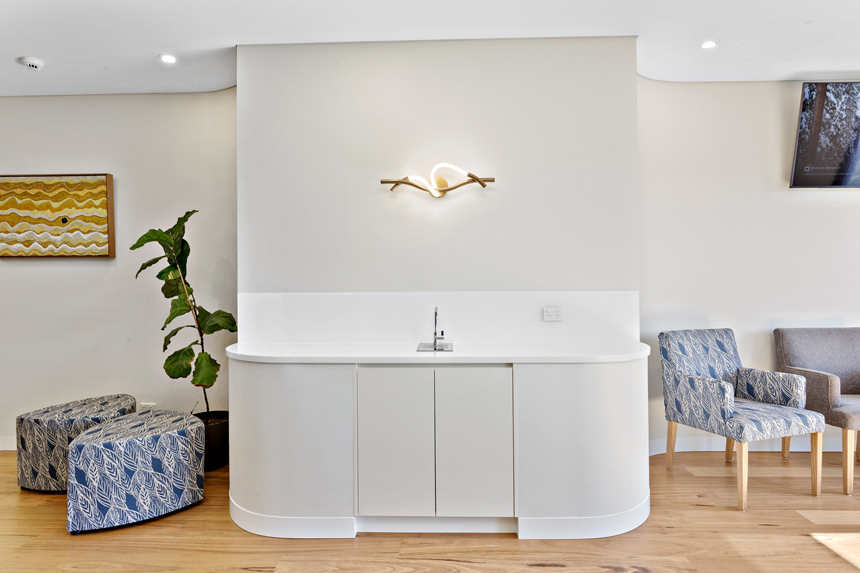 像護(hù)士站這里,就集齊了藝術(shù)燈具、布藝沙發(fā)椅、掛畫、綠植四大元素。