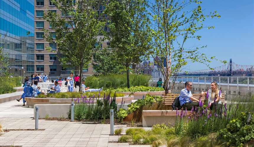 地形限制是項(xiàng)目的首個(gè)挑戰(zhàn):地塊位于曼哈頓中城,瀕臨東河海濱。建筑規(guī)劃不僅要考慮和相鄰醫(yī)院的協(xié)作,還須避開(kāi)場(chǎng)地下方的鐵路隧道,并考慮海平面上升引發(fā)的洪災(zāi)風(fēng)險(xiǎn)。