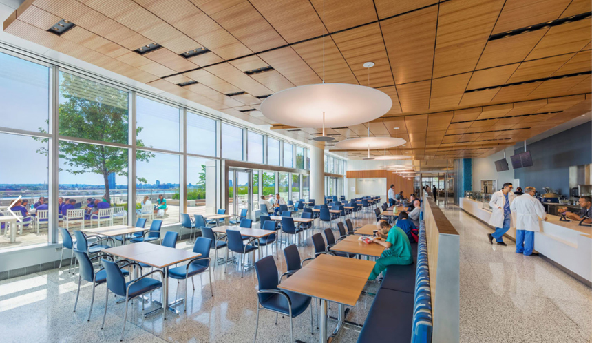 雖然是一個(gè)21層、建筑面積83萬(wàn)平米英尺的大塊頭建筑,但它為人們提供了無(wú)與倫比的獨(dú)特體驗(yàn)。很大程度上,這要?dú)w功于對(duì)自然環(huán)境和醫(yī)療空間的設(shè)計(jì)整合。