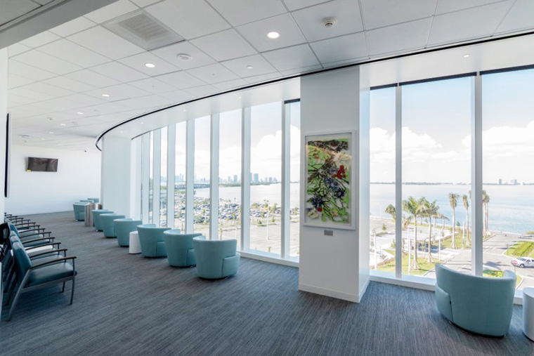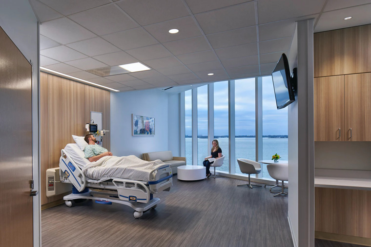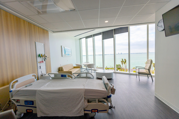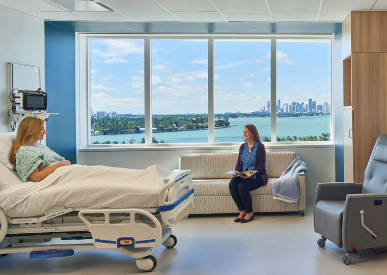 而在開(kāi)放的154 間病房(114 張普通外科病床,40 張重癥監(jiān)護(hù)病床)中,每一個(gè)房間都可以欣賞比斯坎灣和邁阿密天際線(xiàn)的壯麗景色。