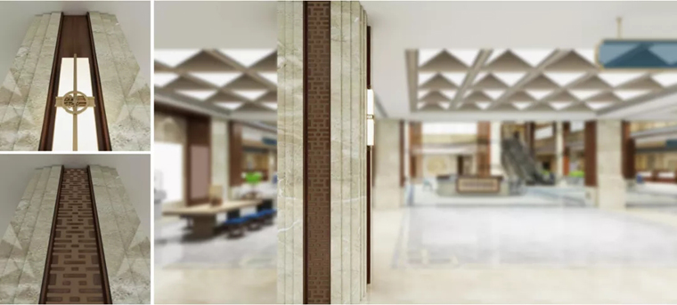 在此之外,通過局部設(shè)計(jì)還能發(fā)現(xiàn)細(xì)節(jié)之美,比如柱體的工藝細(xì)節(jié)就反映了中國傳統(tǒng)裝飾紋樣。