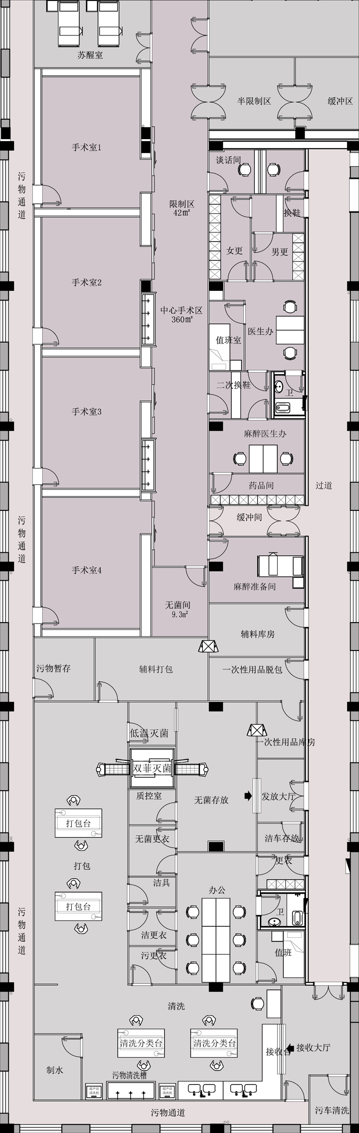 污染區(qū):收集、分檢、清點(diǎn)、處理、清洗、消毒等場(chǎng)所