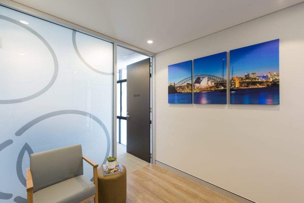 以悉尼特色景觀為主題的壁畫,建立起診所和環(huán)境的關聯(lián),增進用戶對診所的情感認同。