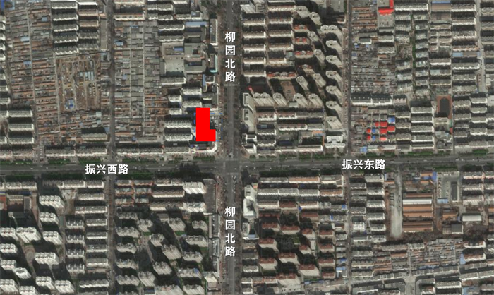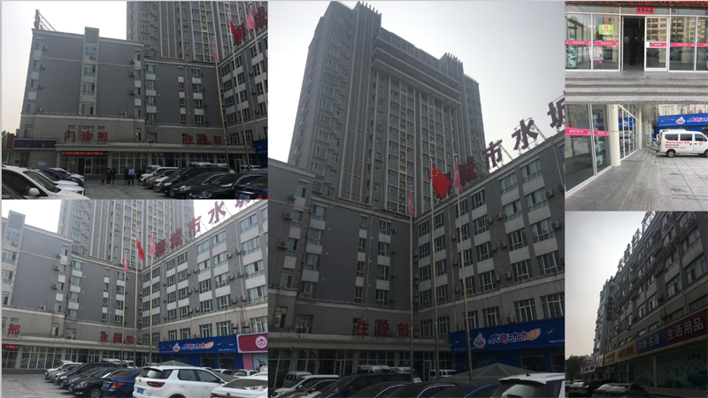 水城婦產(chǎn)居于振興東路和柳園北路交叉口位置,外觀正立面幾乎被行道樹遮蔽了大半。
