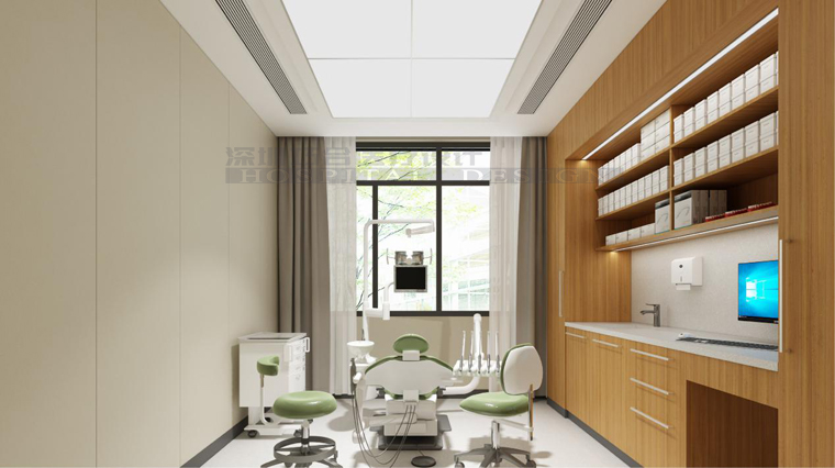 這種結(jié)合藝術(shù)表現(xiàn)的設(shè)計(jì)理念,同樣體現(xiàn)在口腔門診單元的設(shè)計(jì)方案中。木飾面在柔和照明的映襯下,醞釀出沉靜、舒適的環(huán)境氛圍。空間線條保持了簡(jiǎn)練,保持醫(yī)療空間的秩序和規(guī)范,同時(shí)借助隔墻提供必要的隱私空間。