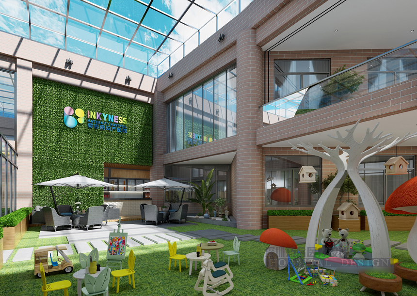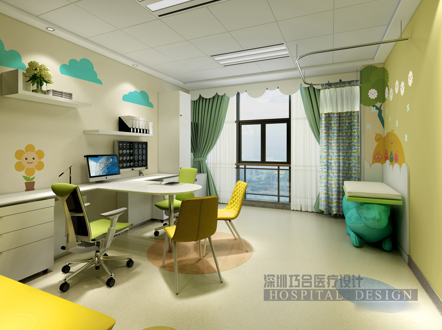 兒科區(qū)的設(shè)計(jì)以“金色童年”為主題,借助豐富的環(huán)境圖形、燈光設(shè)計(jì)及軟裝搭配,構(gòu)筑一個(gè)充滿歡樂的童夢(mèng)園。主題墻貼成本較低,且便于后期管理。