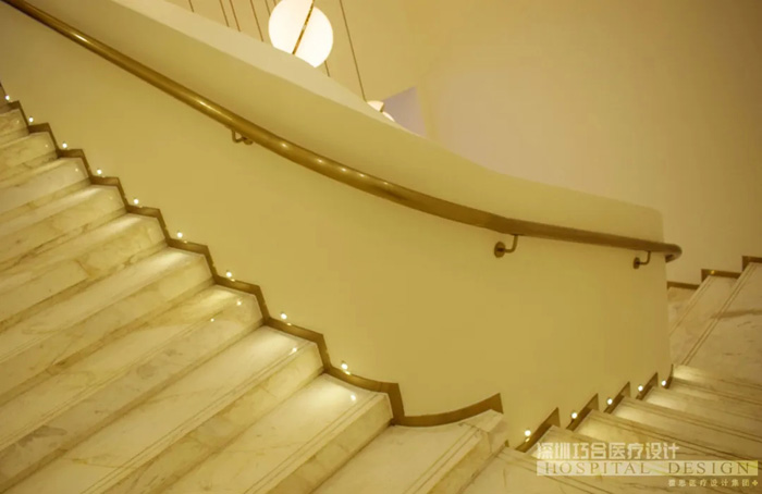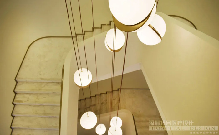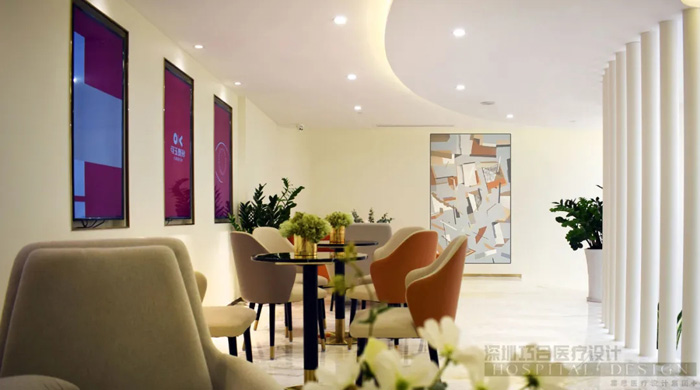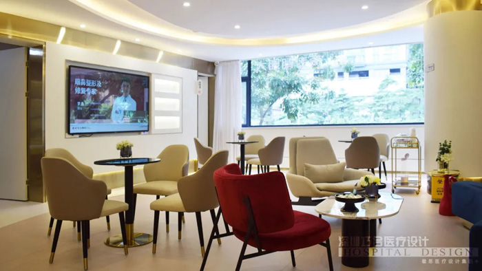 沿樓梯上行,二層是醫(yī)療美容單元。大廳采光極好,順勢將窗外的風(fēng)景也引了進(jìn)來。