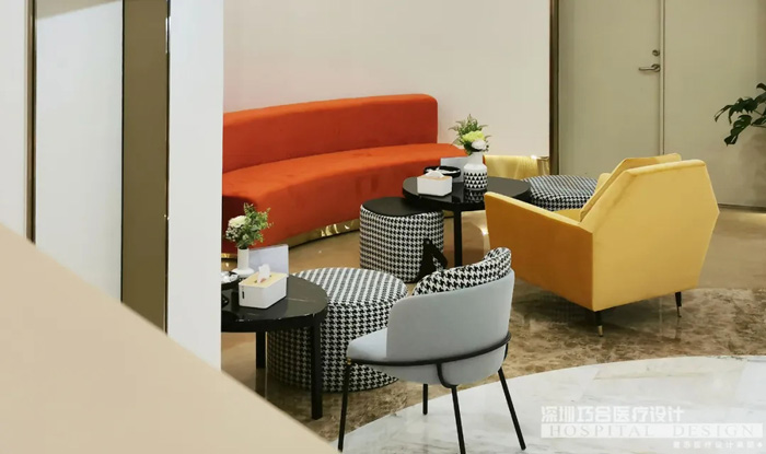 大廳的主要功能還是接待和分流。等候區(qū)設(shè)置了卡座和單座沙發(fā)椅,滿足不同情境下的使用需求。