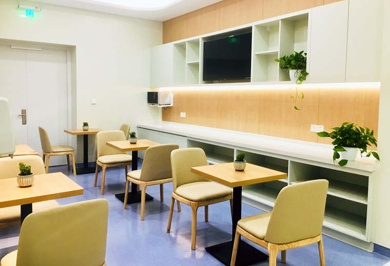 像門診大廳這種人流量大的空間,家具應防水、防潮、防污、耐磨、表面易于清潔,接待臺可以選用人造石材料,等候椅可以是皮質(zhì)或鋼制材料。而病房或月子房的沙發(fā)椅可以搭配木材+皮質(zhì)材料,以增加溫馨感。