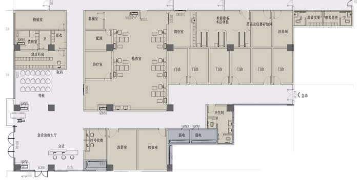 包括分診處、就診室、治療室、處置室、搶救室和觀察室, |