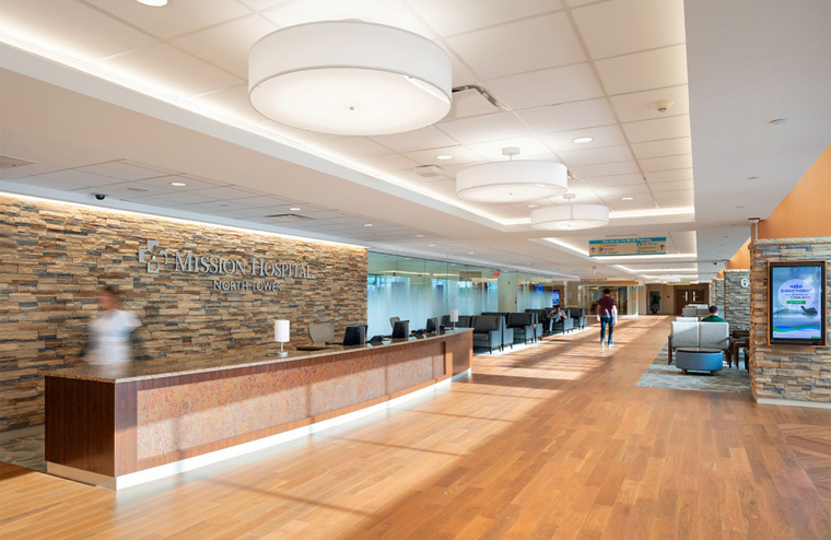 非營利性綜合醫(yī)院Mission Hospital,擁有135年發(fā)展歷史,并且在2019年10月正式交付了新的醫(yī)療大樓——North Tower。