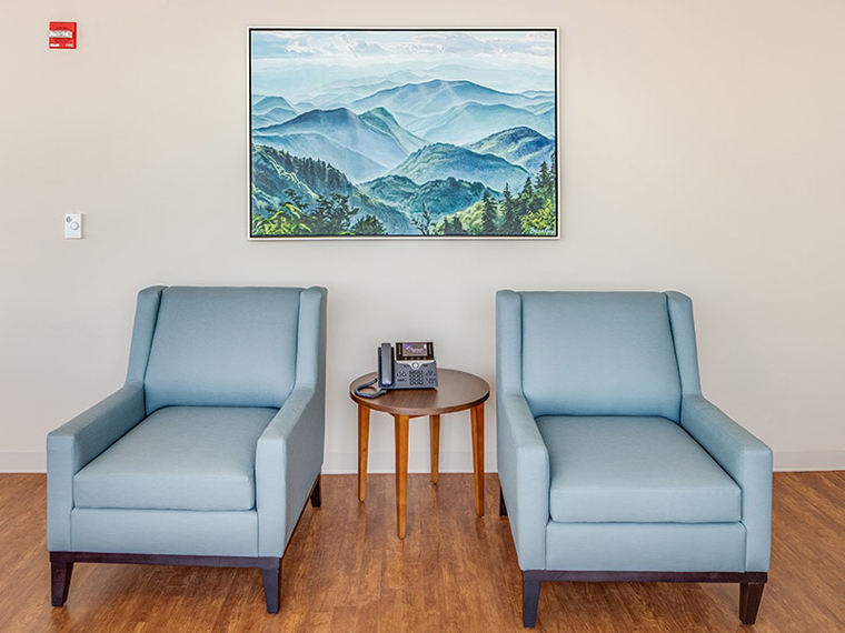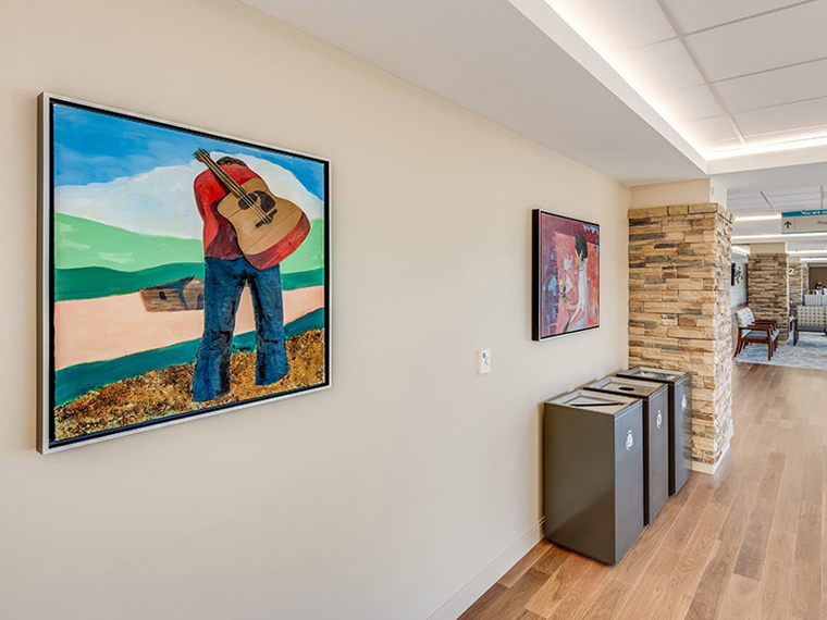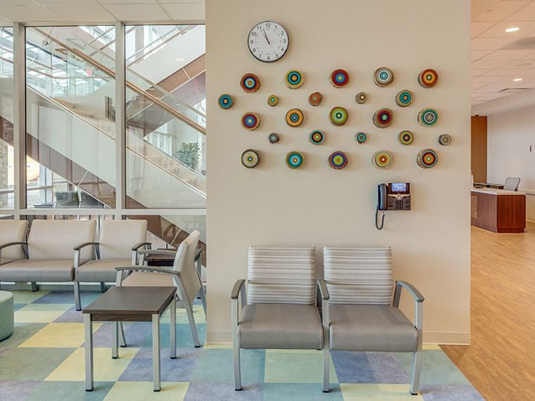 沙發(fā)椅、掛畫、藝術(shù)裝置,軟裝元素的多種質(zhì)地,為這個醫(yī)療空間營造出柔軟且舒適的環(huán)境氛圍。