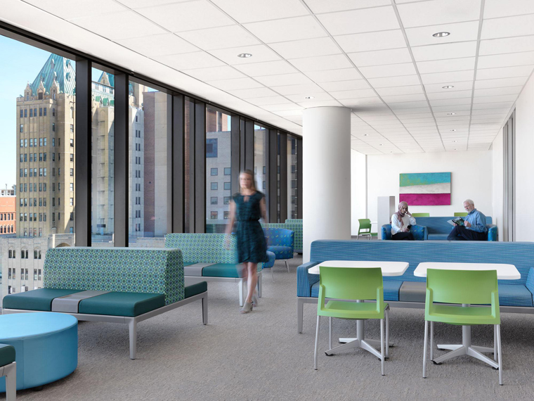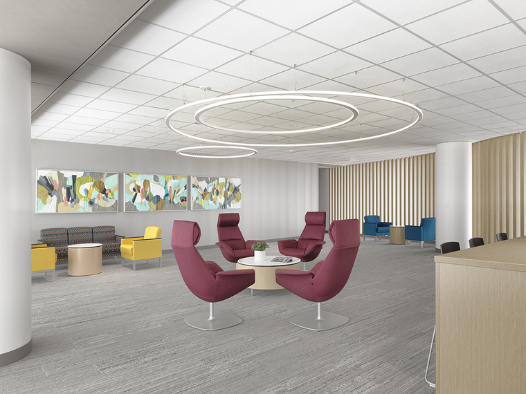就醫(yī)院內(nèi)部環(huán)境而言,在采光、視野之外,醫(yī)療軟裝也是空間療愈力的重要構(gòu)成。在200000 平方英尺(約18581㎡)的門診護(hù)理中心,能捕捉到很多細(xì)節(jié)體驗(yàn)。