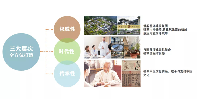 立意于中醫(yī)藥文化的傳承和創(chuàng)新,門診大廳的概念方案融合3大印象——建筑印象,現(xiàn)代醫(yī)學(xué)印象,傳統(tǒng)中醫(yī)印象,并借由功能分布、色彩意象及空間元素全方位構(gòu)筑醫(yī)院環(huán)境。
