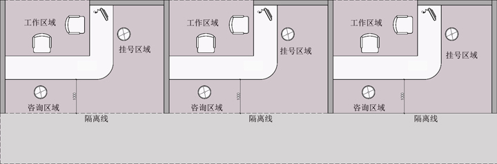 5、依據(jù)JCI PFR病人權(quán)利標(biāo)準(zhǔn):掛號(hào)詢(xún)問(wèn)病人姓名和病情時(shí),須有隱私設(shè)計(jì),避免他人聽(tīng)到或看到掛號(hào)中病人信息。除設(shè)有1米隔離線以外,建議將柜臺(tái)設(shè)計(jì)成L型,也有利區(qū)隔掛號(hào)和咨詢(xún)的病人(分流),以免增加掛號(hào)等候的時(shí)間。