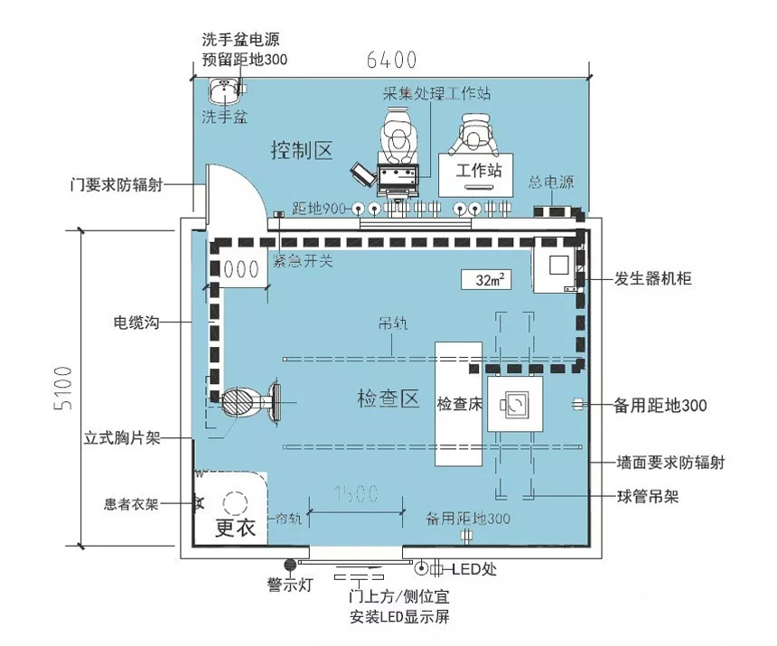 3、設(shè)備機(jī)房的上層房間不宜設(shè)衛(wèi)生間,或其他用水量大的功能房間,以防上層漏水損壞設(shè)備,及排水被輻射污染。