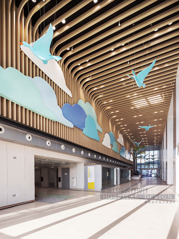 △門診大廳的吊頂之下,妙趣的藝術(shù)裝置點亮空間。