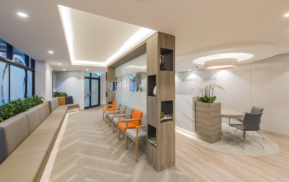 這個眼科診所主要服務周邊社區(qū)居民,因而在裝修設計上,也保持了富有親和力的趨同性。