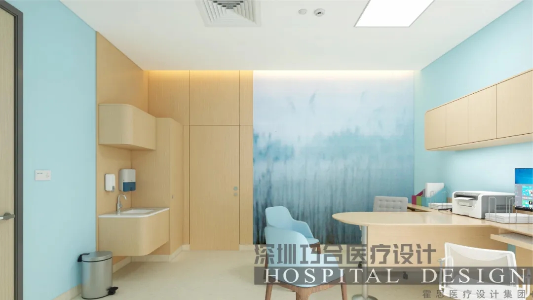 另一方面是克制地做加法,通過細節(jié)增加醫(yī)療環(huán)境的舒適度,包括科學(xué)的色彩搭配,合理增加環(huán)境圖形,避免眩光設(shè)計的空間照明,全面提高患者就醫(yī)體驗。